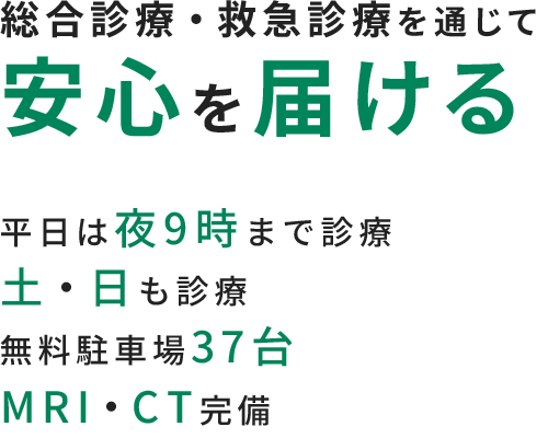 外来診療から即日の精密検査、もしもの時の救急、そして回復へのリハビリまで。住民の皆様がいつでも医療の恩恵がえられるように、私たちは準備しております。