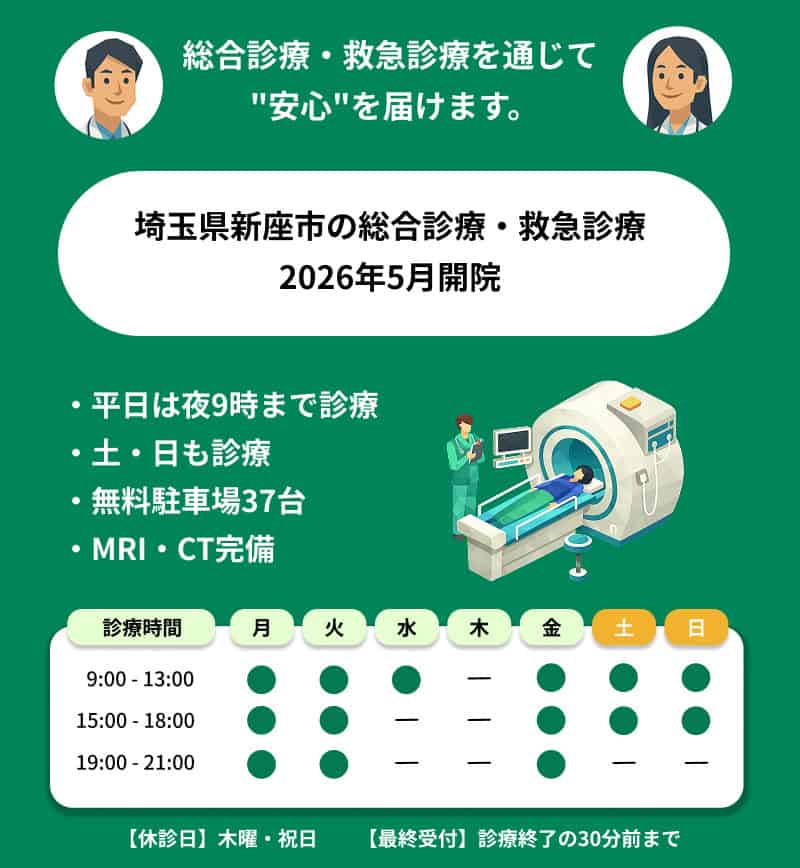脳卒中や心筋梗塞、肺炎などの緊急性の高い病気から、がん、筋肉・骨・関節の痛み、内臓の不調まで、幅広く診療します。症状の原因を迅速に見極めるために、血液検査や心電図などの基本検査に加え、CT/MRIといった画像検査を含めた検査体制を整え、放射線科医と連携して読影いたします。大きな病院へ足を運ぶことなく、必要な検査を適切な順番で実施し、検査結果をもとに、